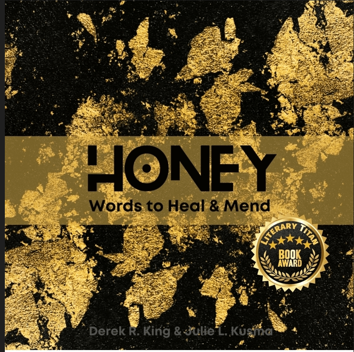 A collection of art inspired by Kintsugi and Wabi-Sabi coupled with honey words to heal and mend by author-poets, Julie L. Kusma and Derek R. King. The complete poem, ‘Kintsugi’ by Derek R. King can be read at julie-kusma dot com.