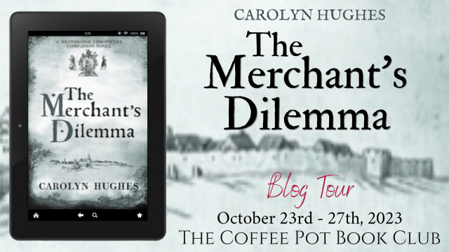 The Merchant’s Dilemma is a companion novel to the main series of Meonbridge Chronicles, and continues the story of Bea and Riccardo after the end of the fourth Chronicle, Children’s Fate. It is a little more romantic and light-hearted than the other Chronicles but, if you’ve enjoyed reading about the lives of the characters of Meonbridge, you will almost certainly enjoy reading The Merchant’s Dilemma too!