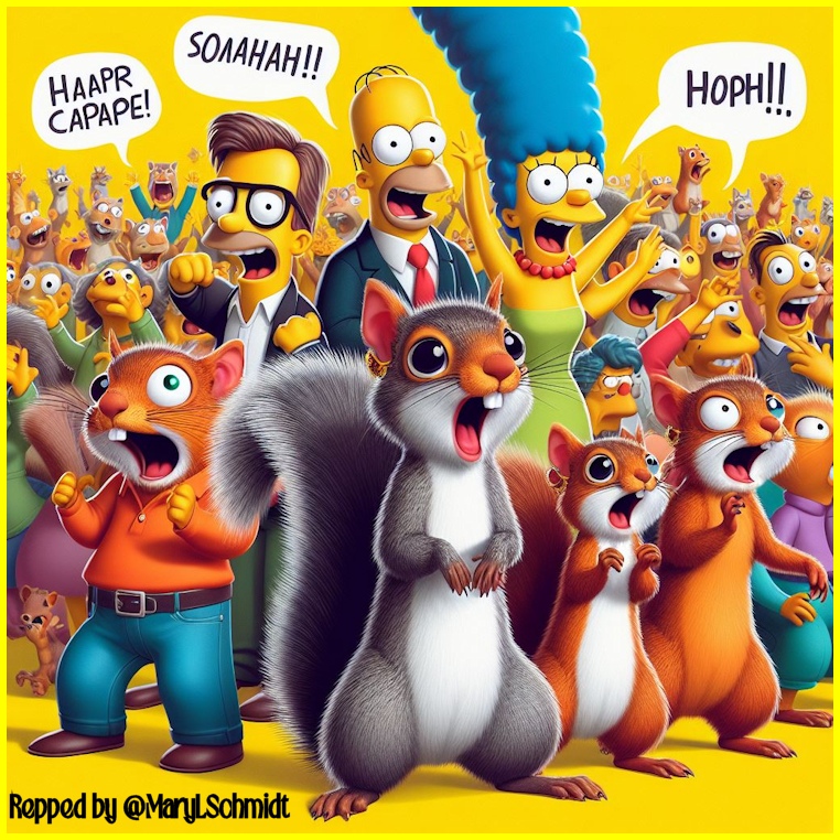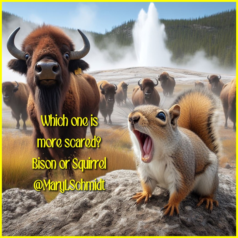 The bison looks as startled as the squirrel.
