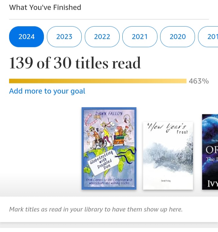This was my best year in reading books. This also represents my ebook reads only, not my paperback or hard bound.